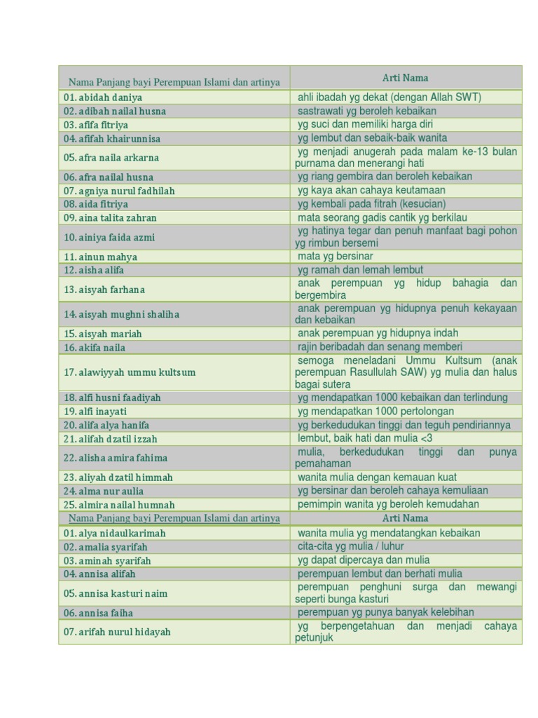 Nama Bayi Perempuan Islam Panjang Dan Artinya لم يسبق له مثيل