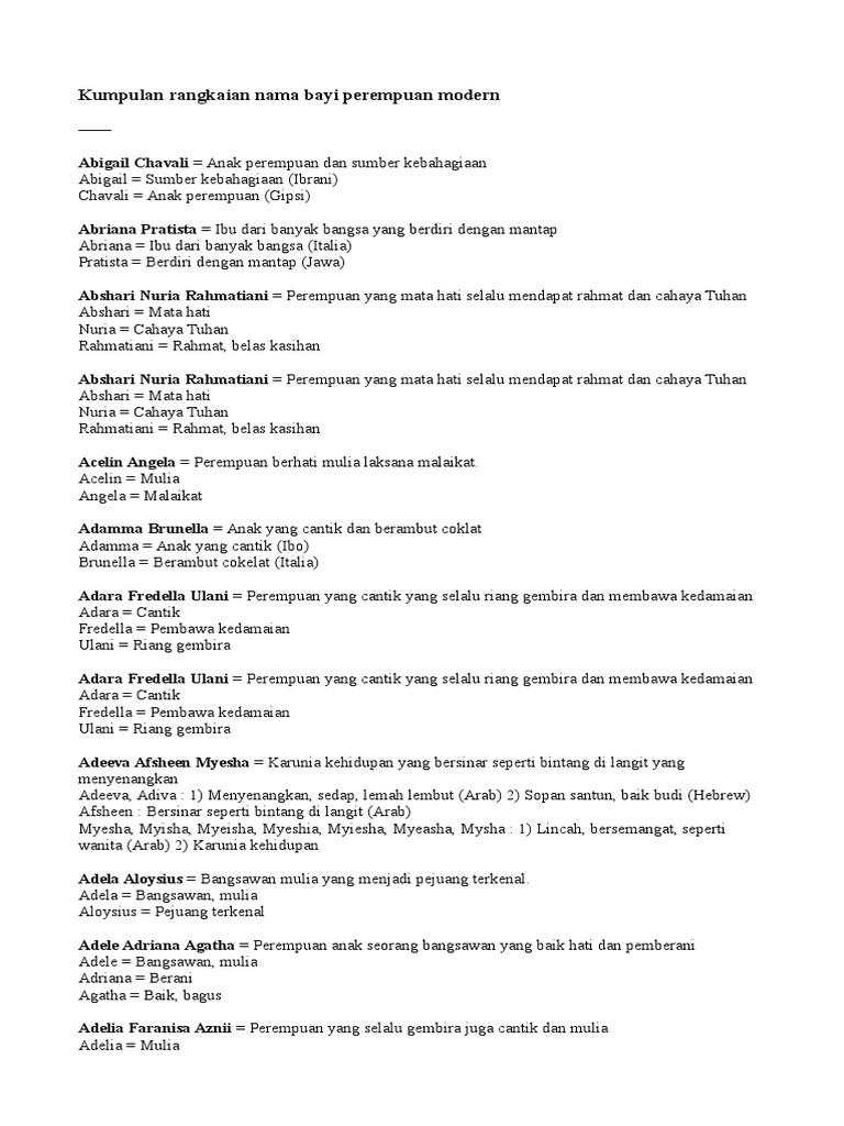 Rangkaian Nama Bayi Perempuan Modern Unik Keren Kitabnamabayi Comkumpulan Arti Nama Bayi 2 3 Kata Unik Keren